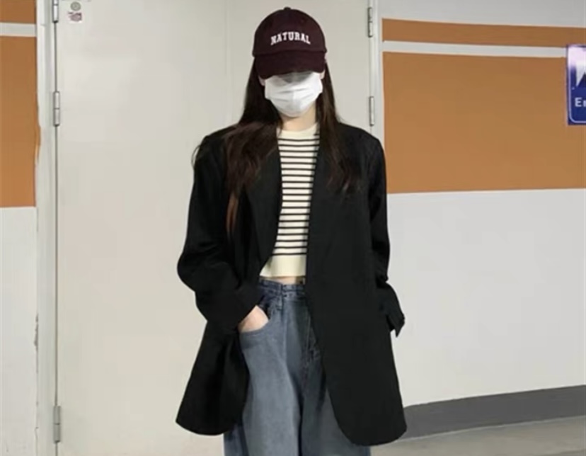 oversize黑色西装外套女宽松2023春季新款休闲大码廓形气质小西服