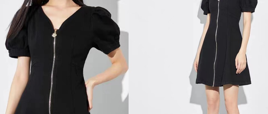 小个子女孩显瘦短款连衣裙夏2023新款很仙女大码遮肚减龄洋气裙子 黑色 S