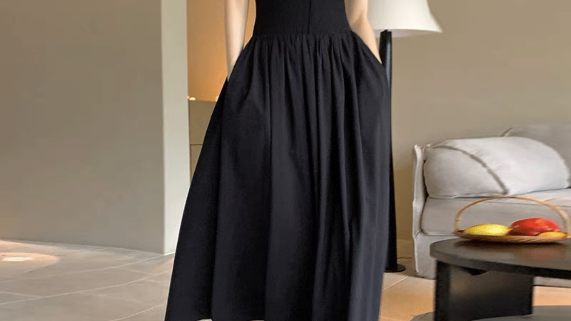 超长气质显瘦网红爆款赫本风拖地小黑裙背心辣妹美式连衣裙女夏季 s