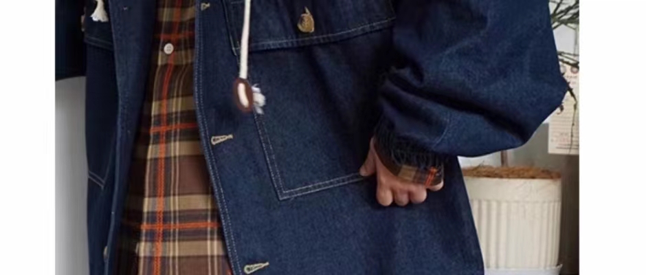 阿代家/日系复古 深蓝色牛仔外套女 设计感满满慵懒风 宽松休闲上衣