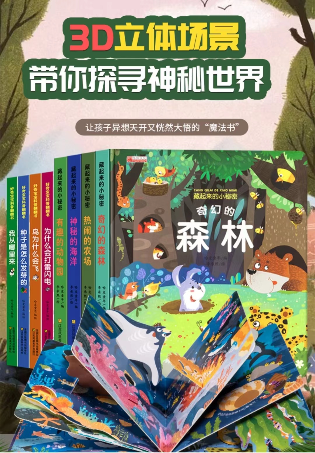 儿童3d立体书翻翻书情景体验海洋绘本宝宝益智书籍早教书启蒙认知睡前故事奇幻的森林神奇的动物