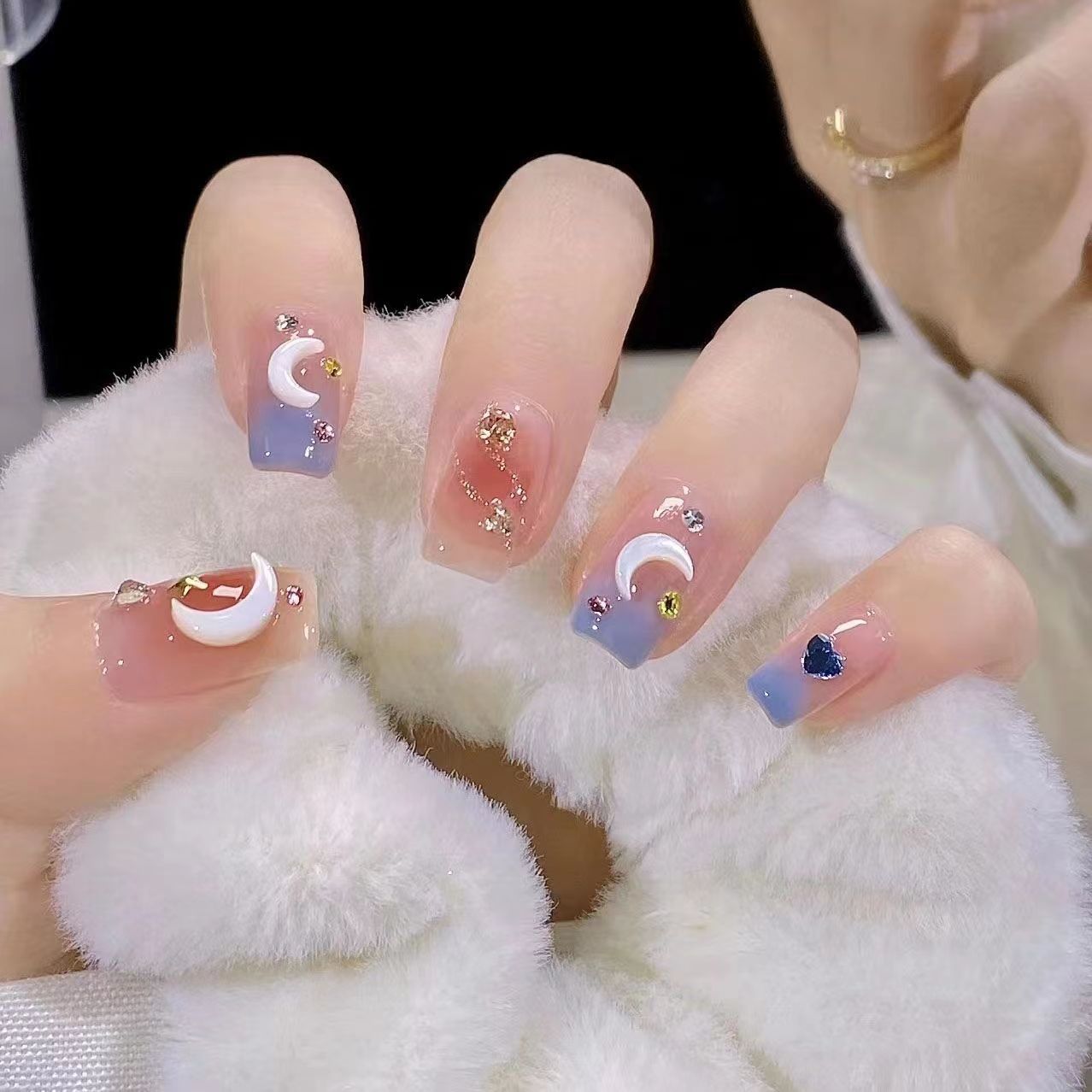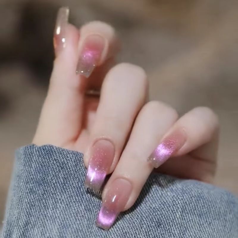 ins高档裸色奶咖渐变爱心钻爆闪美甲穿戴甲日式温柔显白指甲贴片