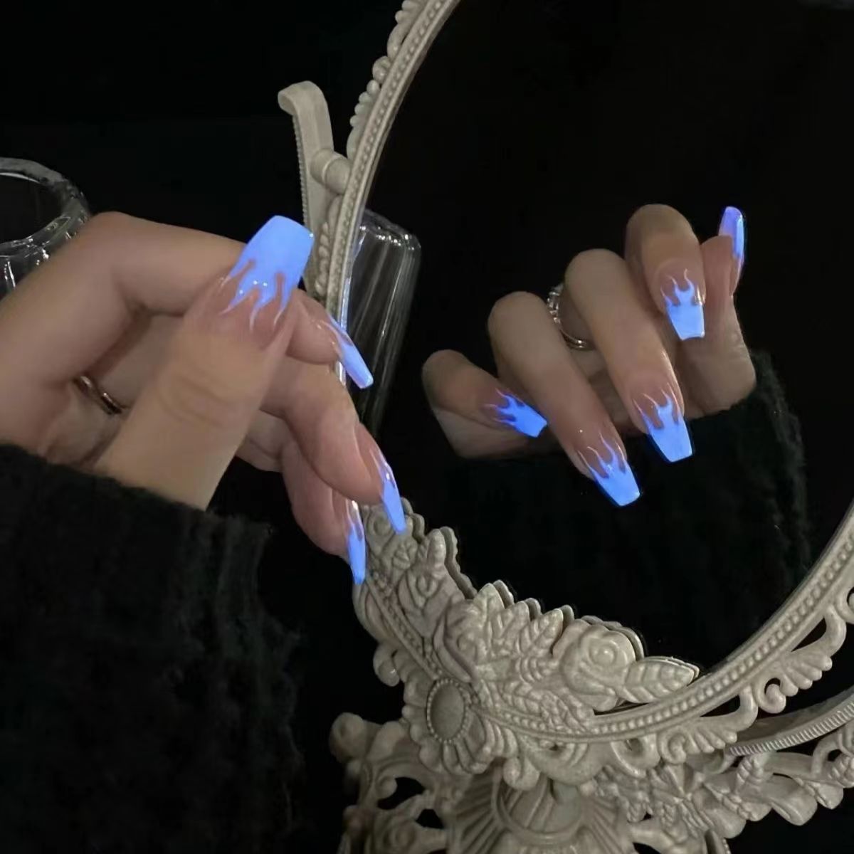 纯手工穿戴甲蹦迪夜光火焰仓兰诀业火ins辣妹贴片荧光穿戴甲