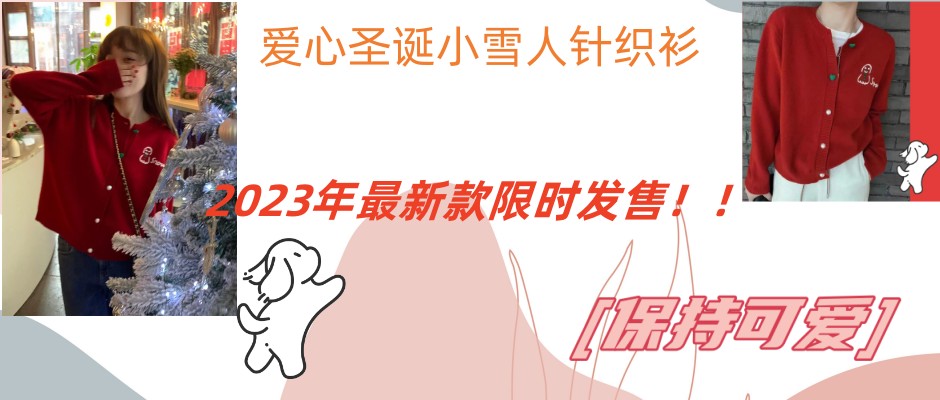 新年过年红色小雪人羊毛针织开衫女秋冬冬季大红毛衣外套长袖上衣