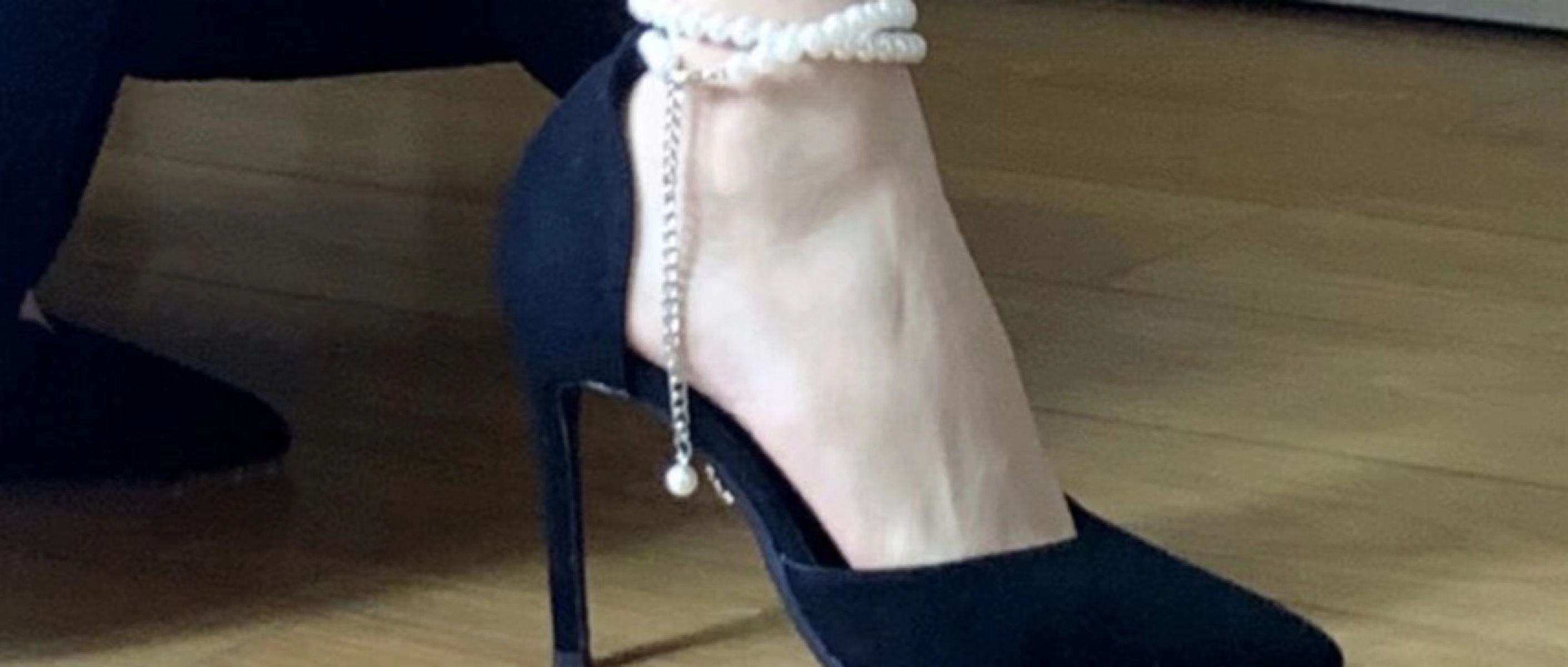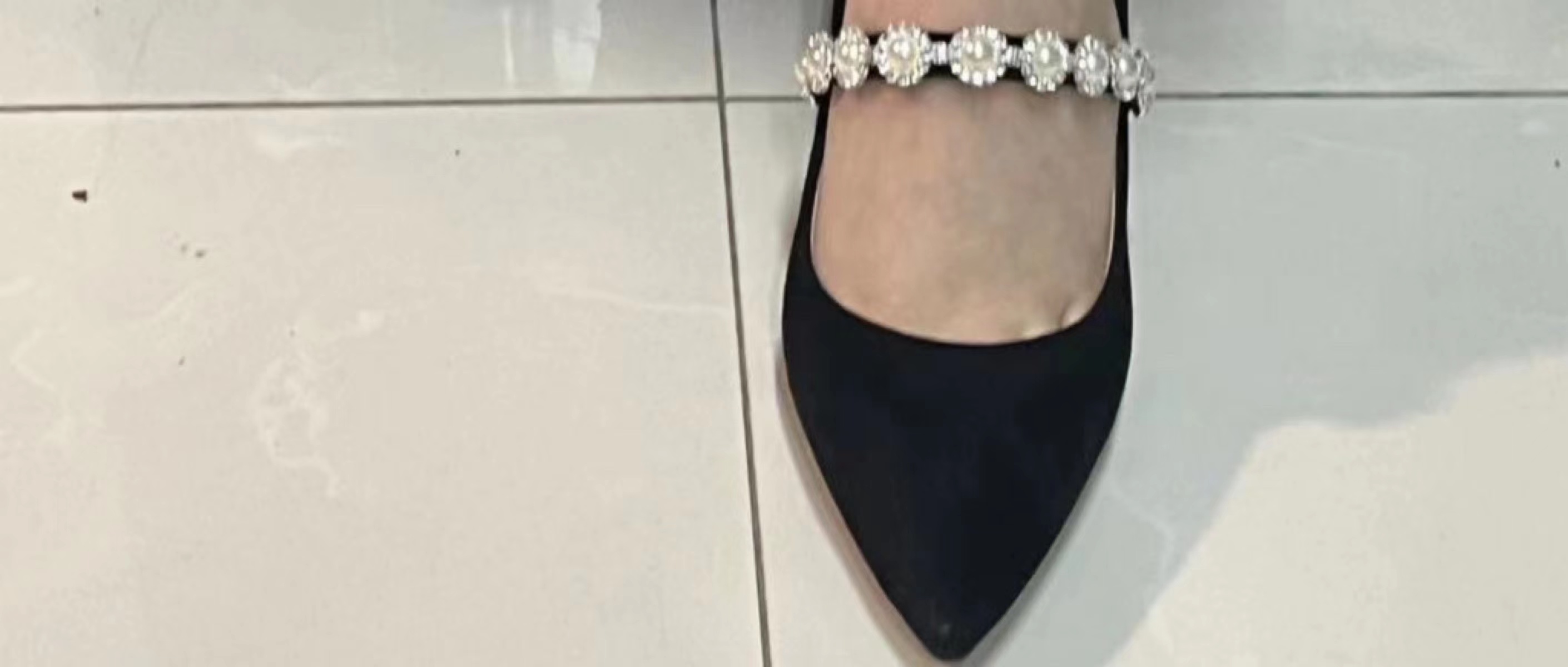 2023新款尖头细跟高跟鞋女黑色绒面一字扣带凉鞋女鞋珍珠高跟鞋女 35