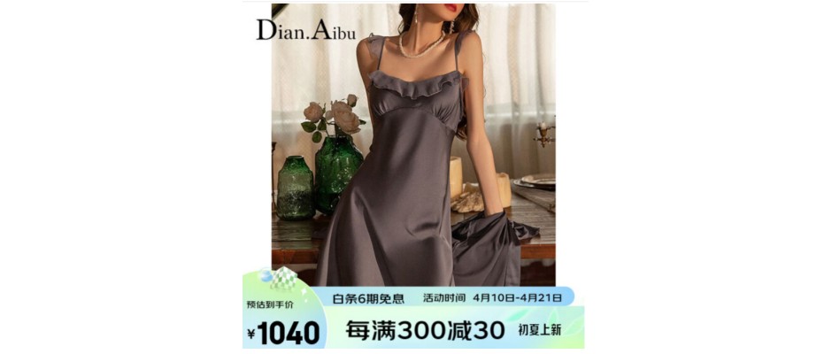 Dian.Aibu性感睡衣女2023年夏季新款气质纯欲风带胸垫蕾丝荷叶边吊带睡裙 墨蓝灰套装 L