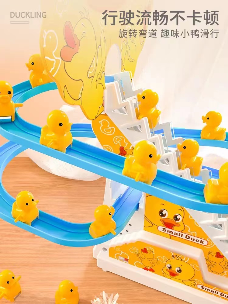 儿童小鸭子滑滑梯玩具男宝宝1-3岁2电动一直音乐轨道小黄鸭爬楼梯