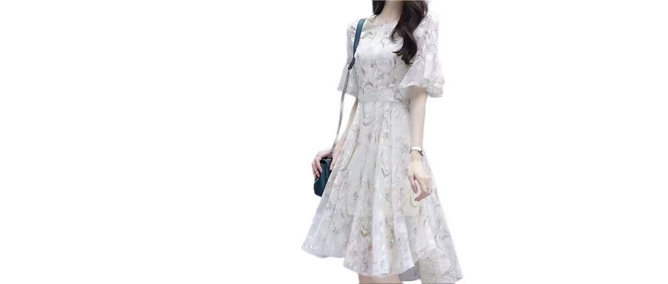 LEDE雪纺连衣裙女装夏装修身显瘦超仙气质中长款小个子碎花裙子夏天短袖衣服潮 S