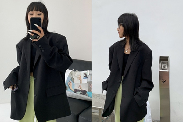 黑色小西装外套女2023新款春秋装今年流行oversize休闲高级感西服