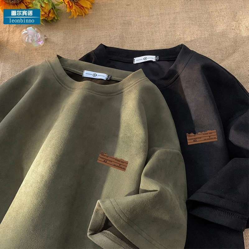麂皮绒重磅短袖t恤男夏季潮牌潮流美式复古休闲体恤宽松情侣半袖