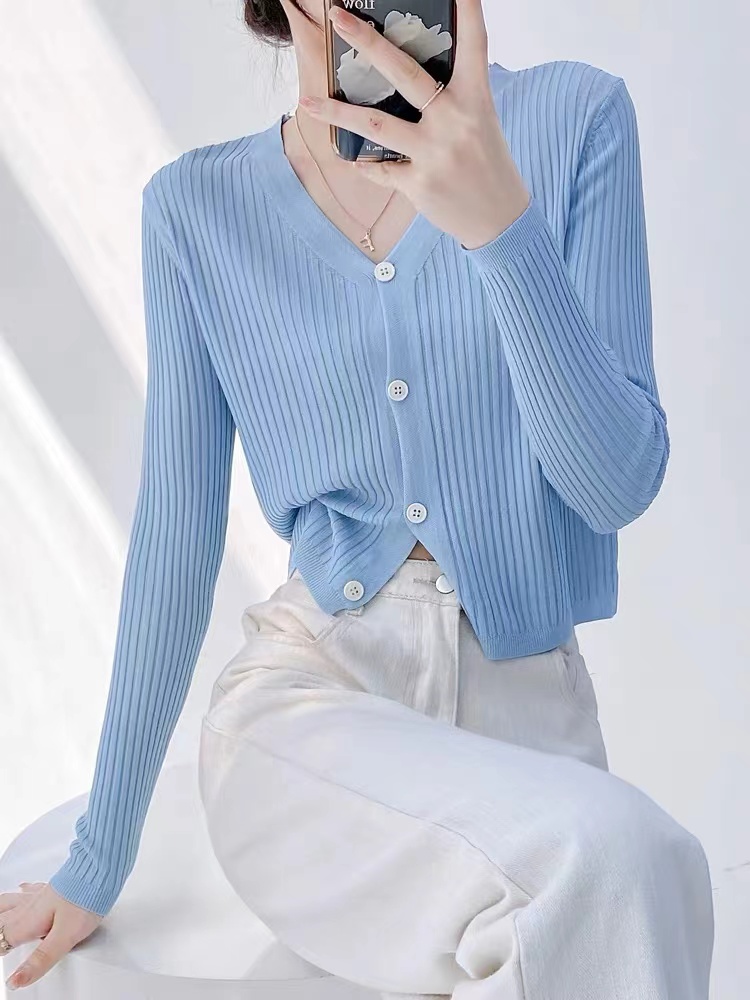 设计感小众蓝色条纹防晒衬衫上衣女装2023新款别致小衫衬衣春秋款