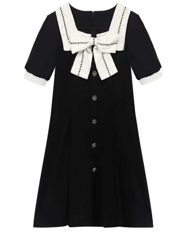 大码微胖女生法式蝴蝶结显瘦连衣裙女小众设计感胖mm梨型身材裙子