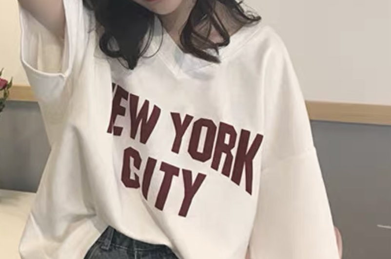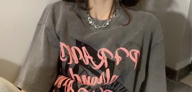 特大码宽松韩版BF慵懒风半袖上衣字母印花体恤女潮ins