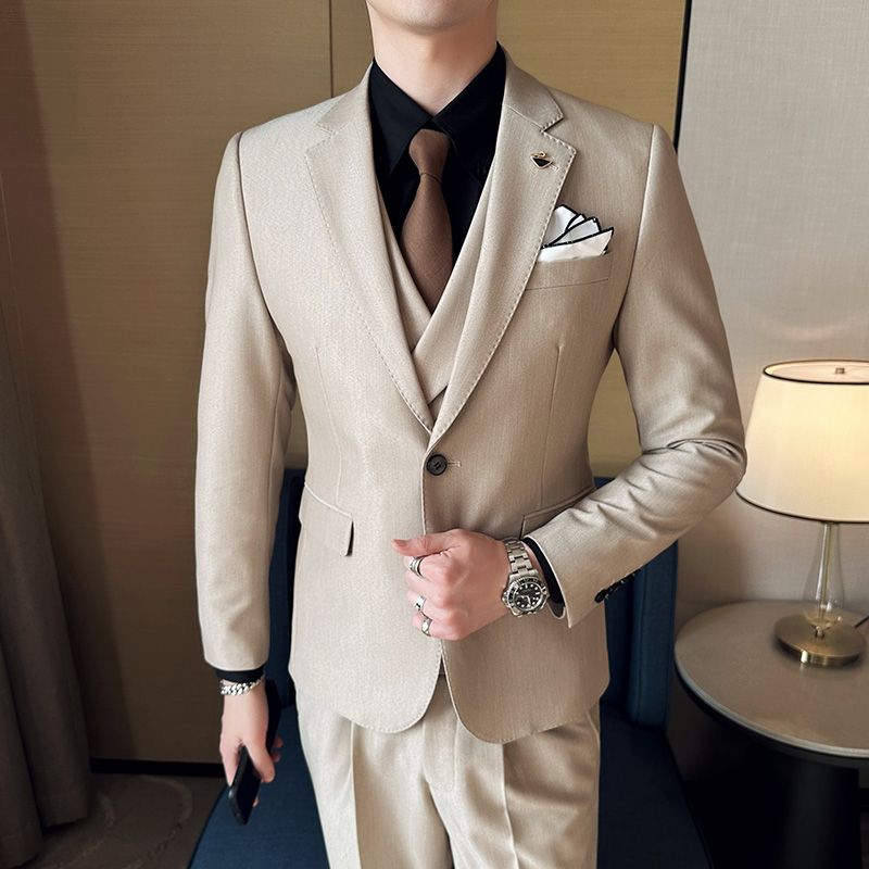 春秋英伦商务修身西服套装男一粒扣纯色西装三件套