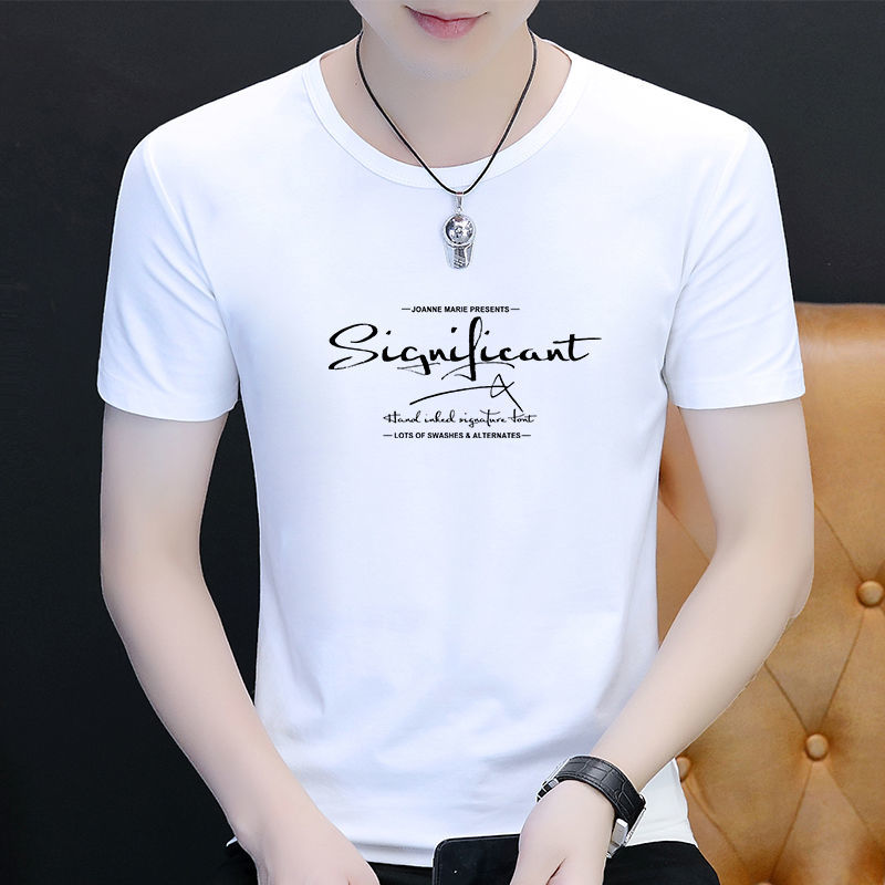 纯棉冰感百搭短袖t恤男士夏季2022新款体恤男装ins半袖印花上衣服