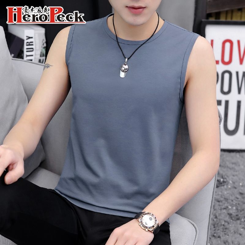 高档纯棉 冰丝背心男士夏季马甲运动坎肩修身无袖宽肩汗衫青少年