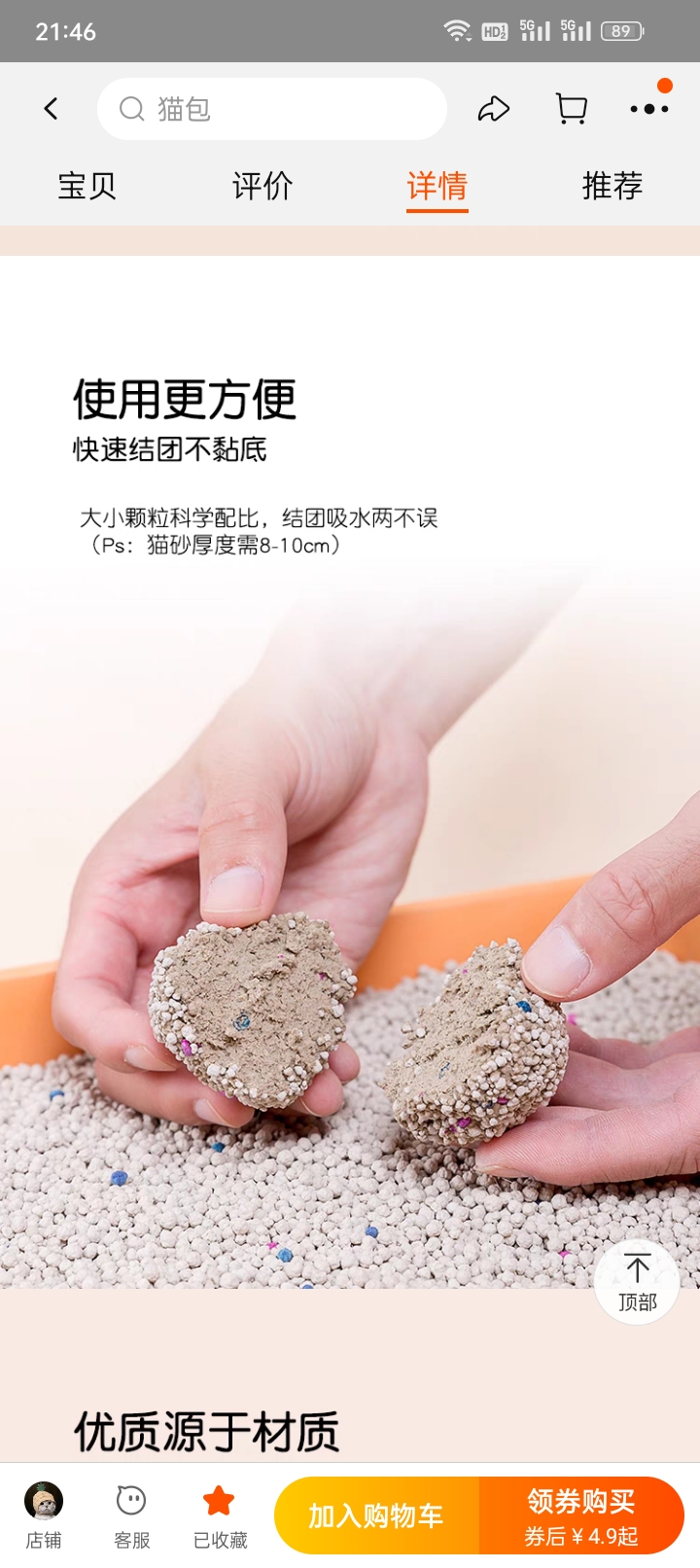 在这家多次购买了这款猫砂,质量非常好,除味效果非常强,宠物超喜欢这款猫砂,猫砂不粘猫咪的爪子,包装非常的漂亮。好评好评好评好评好评!