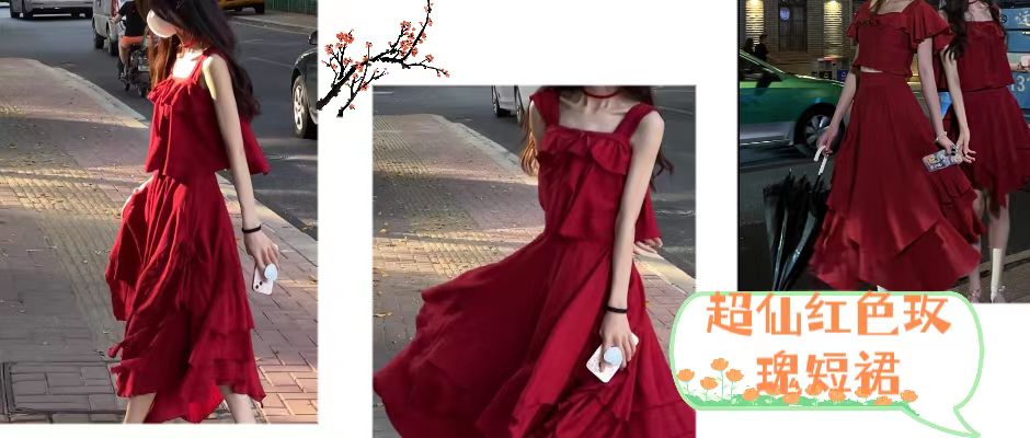 甜美超仙吊带连衣裙女夏季收腰显瘦法式初恋桔梗裙防晒衫两件套装