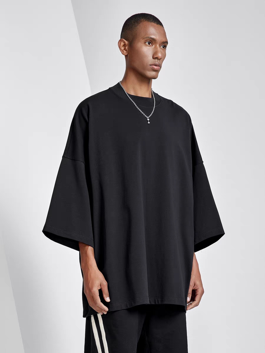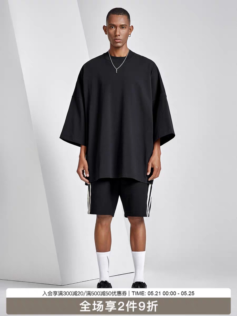千寻大版嘻哈黑色短袖T恤男oversize纯棉休闲美式宽松五分袖