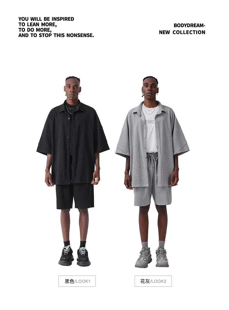 B+系列 BD潮牌短袖衬衫男宽松休闲情侣刺绣翻领衬衣