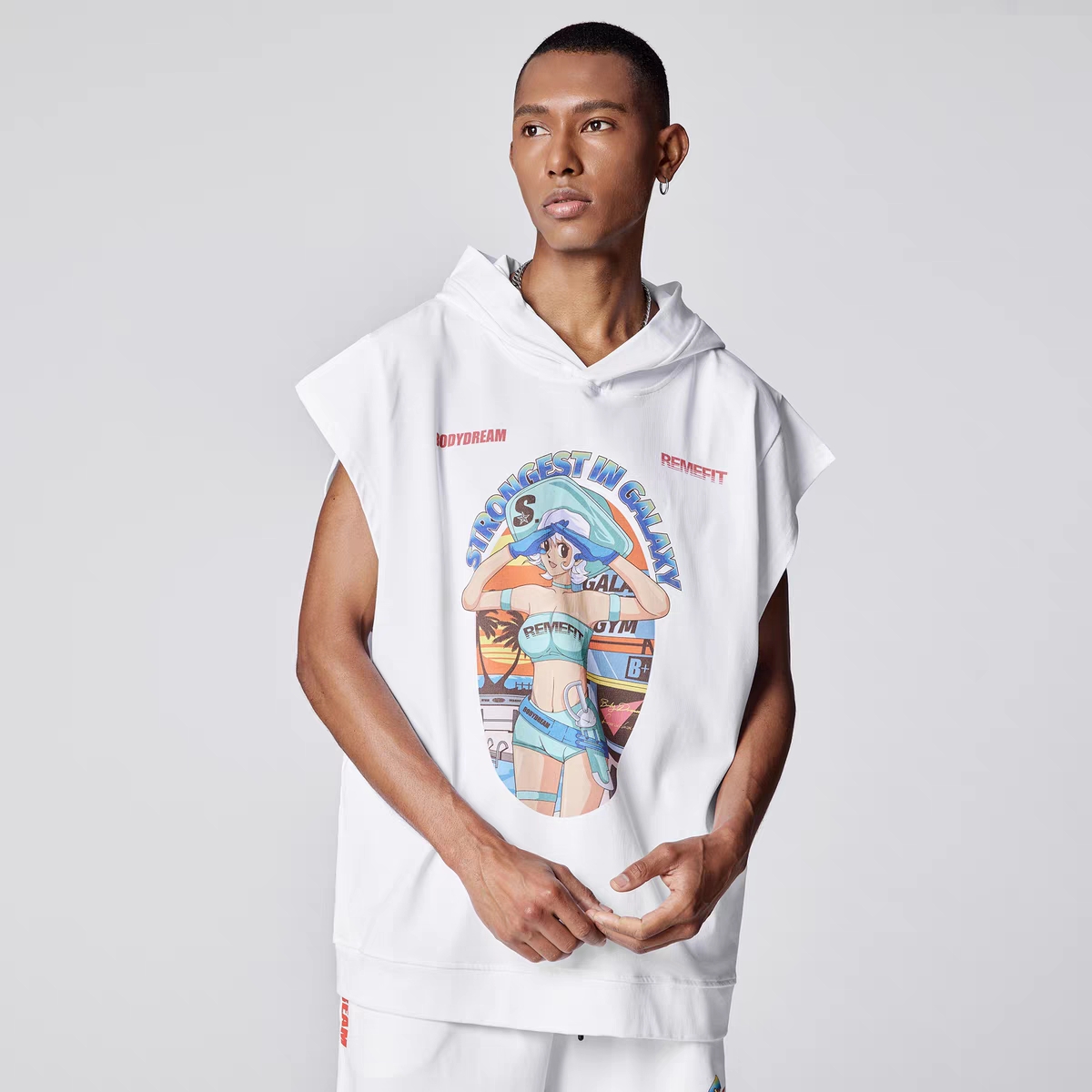 STA联名款千寻xREMEFIT银河海盗系列运动休闲健身连帽坎肩