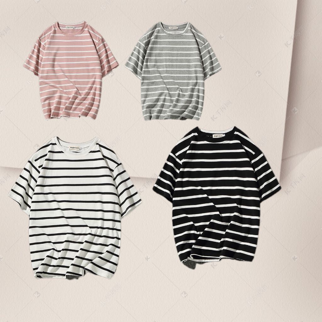 野旗马2019夏季新款圆领短袖t恤男条纹短袖男青少年休闲百搭韩版