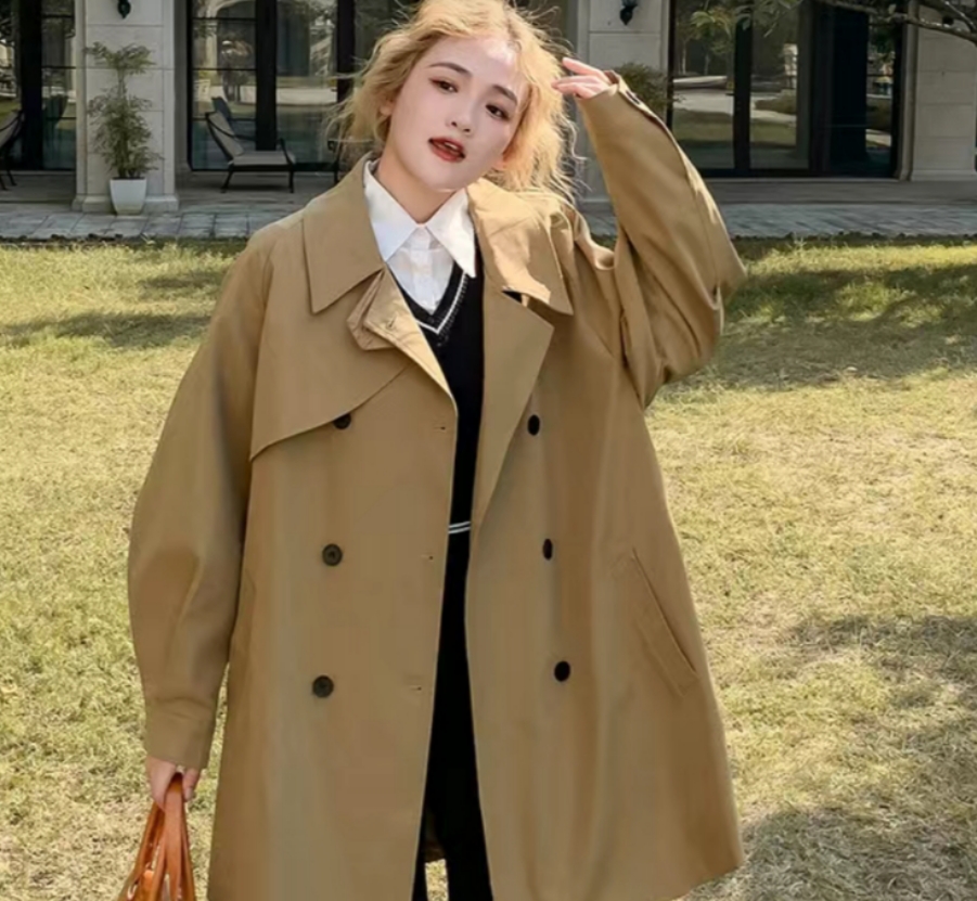 小个子风衣外套女2023春季新款韩版卡其色宽松休闲百搭女风衣大衣