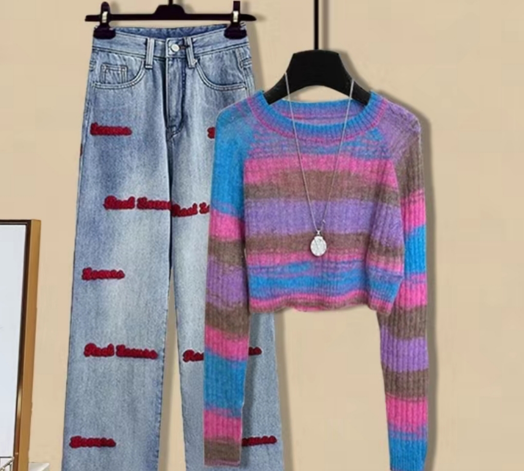减龄漂亮洋气套装2023春季新款薄款针织衫上衣搭配字母刺绣阔腿裤