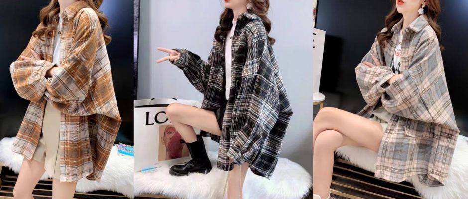 加厚磨毛格子衬衫女秋冬新款韩版宽松学生衬衣毛呢开衫外套上衣服 韩版宽松外套 黑色 M