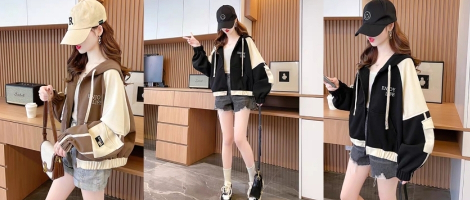 秋季撞色短款外套女春秋薄款2023新款连帽卫衣宽松小个子开衫上衣 短款外套 黑色 M
