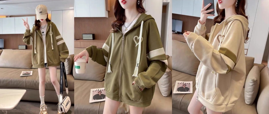 连帽薄款卫衣女春秋2023新款韩版宽松拉链开衫外套设计感小众上衣 韩版宽松外套 绿色 M