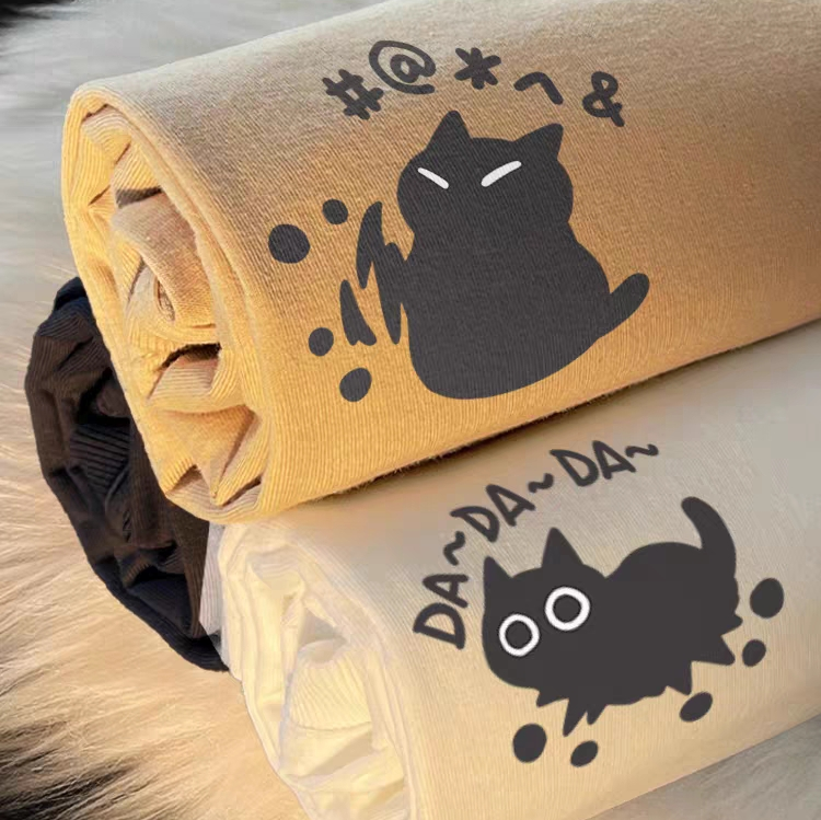 依依 纯棉宽松透气中性T恤夏季女装 快跑猫猫 包邮