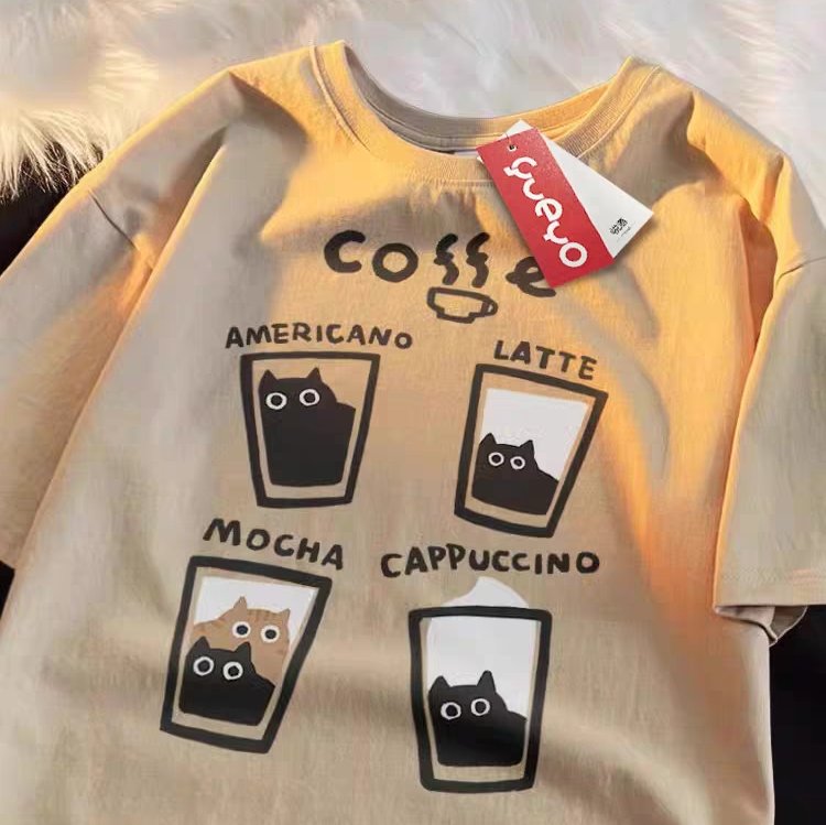 依依 纯棉透气夏季女装男装T恤 杯中黑猫 包邮