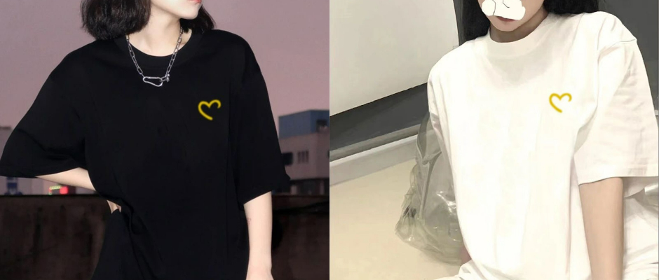 小众100%纯棉短袖t恤男女情侣潮流帅气爱心圆领体恤百搭港风半袖 黑色 s