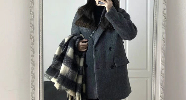 灰色呢子大衣