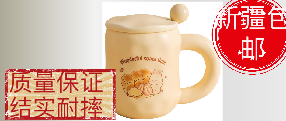 新疆包邮可爱奶fufu杯子面包马克杯带盖勺ins风女生陶瓷咖啡早餐