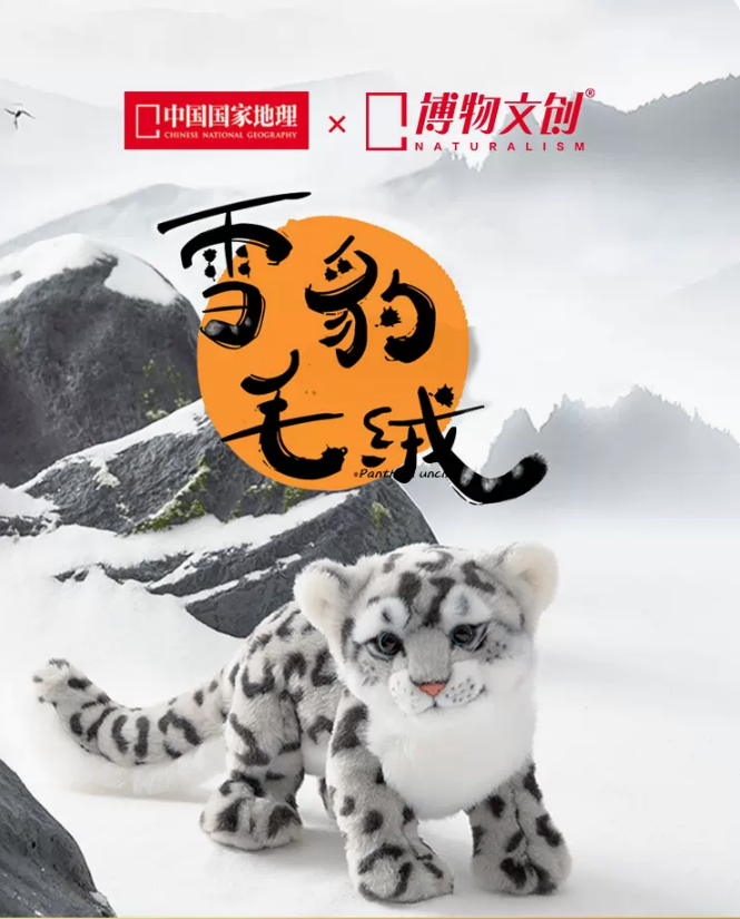 博物文创中国国家地理毛绒玩具男孩雪豹子玩偶猫咪小老虎公仔娃娃