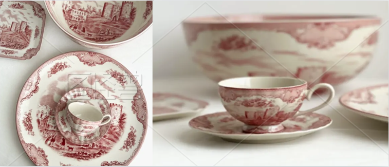 出口单 量少售完无补 收藏欧式红色建筑陶瓷盘 蕾丝边花朵咖啡杯 杯+碟套装