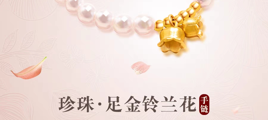 周大福999足金铃兰花淡水珍珠手链女款搭配黄金运转珠送女友老婆