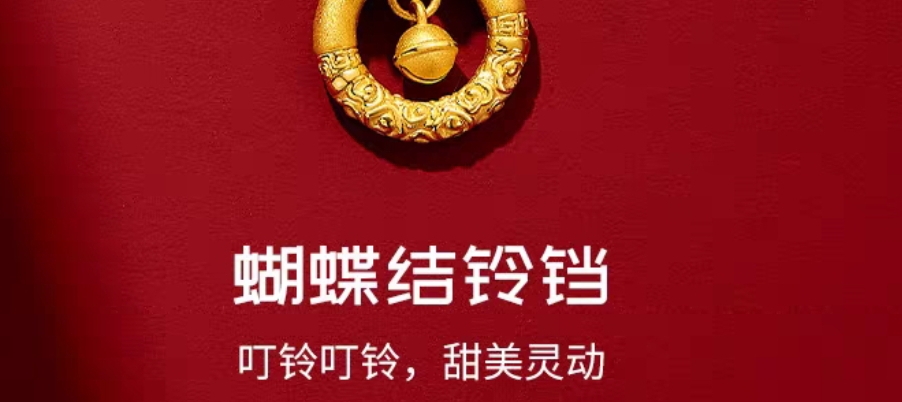 梦金园在逃公主黄金吊坠女足金蝴蝶结铃铛5D硬金挂坠项链送女友