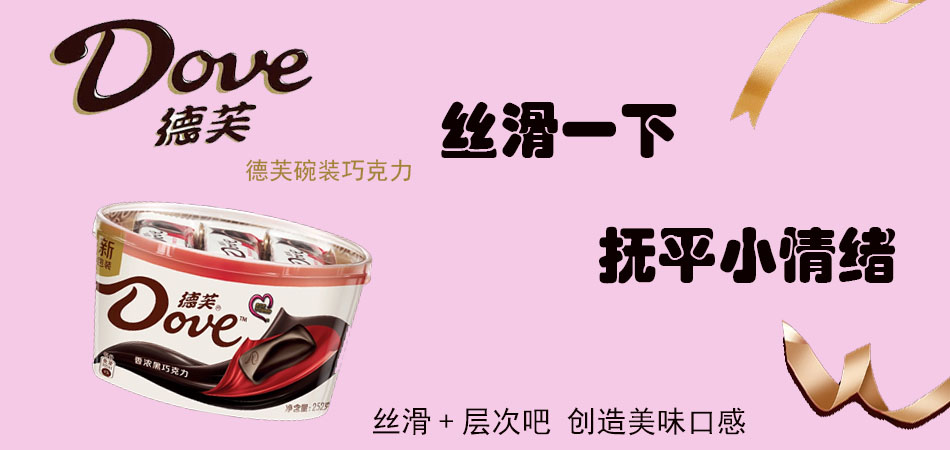 德芙丝滑碗装巧克力252g盒装排块牛奶黑巧香浓夹心混合
