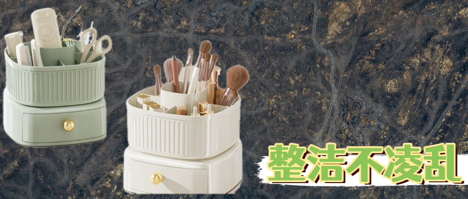 化妆品收纳盒双层旋转化妆刷彩妆口红置物架桌面抽屉梳妆台收纳筒