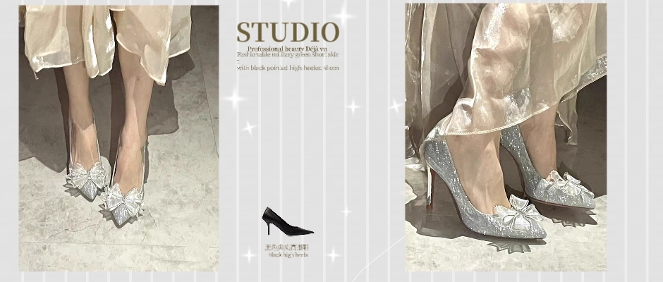 法式高跟鞋女2023夏季新款水钻蝴蝶结水晶婚鞋气质名媛细跟单鞋女