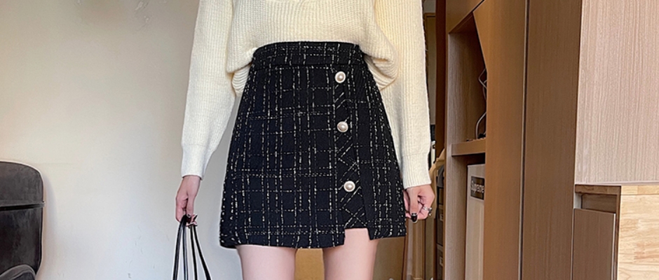 适用年龄: 25-29周岁材质: 涤纶尺码: S M L XL 2XL 3XL 4XL面料: 毛呢图案: 格子风格: 通勤腰型: 高腰颜色分类: 黑色货号: 黑色3扣001裙型: A字裙年份季节: 2021年冬季裙长: 短裙流行元素/工艺: 纽扣廓形: A型