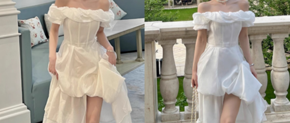 白色一字肩连衣裙女高级感轻奢生日小礼裙气质抹胸长裙子