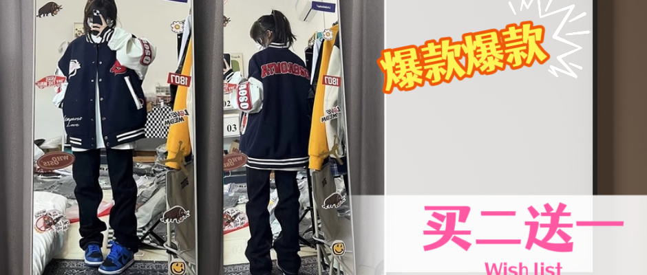 国潮美式街头学院风字母棒球服女冬季加绒加厚开衫外套夹克上衣潮