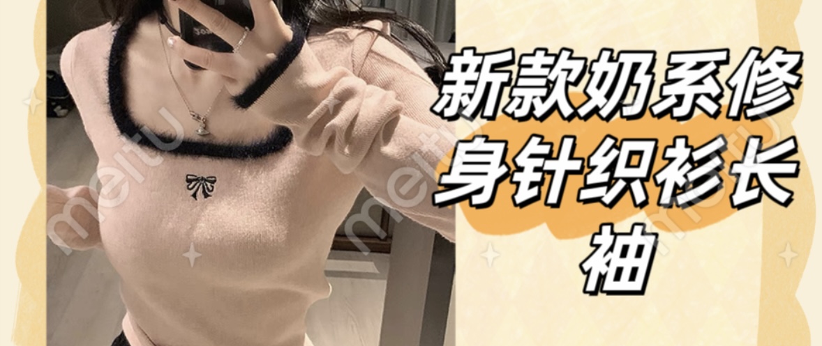 奶系修身针织衫长袖上衣 修身 百色 M