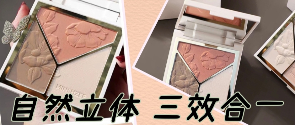 李佳琦高光修容盘一体盘闪粉细闪脸部提亮哑光高光腮红鼻影三合一。