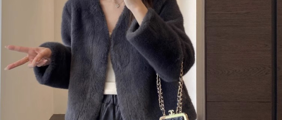新款秋冬保暖皮毛一体水貂毛绒开衫小香风外套慵懒短款加厚上衣女