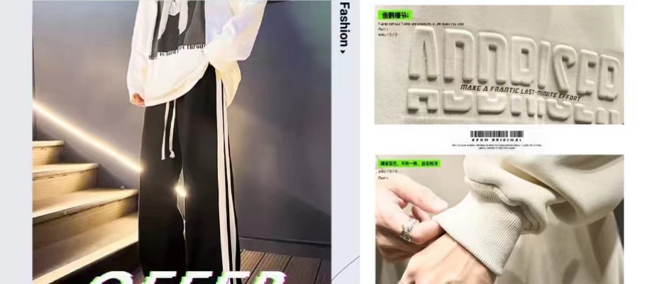 潮牌卫衣男生2023秋季新款美式重磅圆领长袖外套情侣春秋宽松衣服